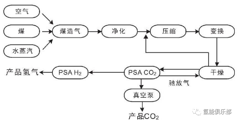 煤气化制氢工艺流程简图 ▼