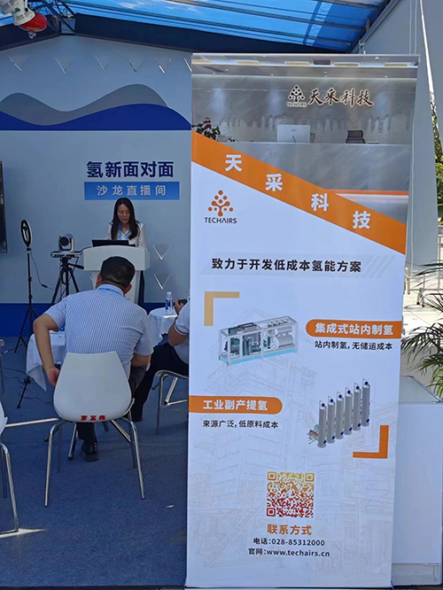 在本次展会上,天采科技以组团形式在联合展位亮相了展览会,天采科技的成员们以饱满的热情和专业的态度,迎接了来自各地的行业专家和朋友。在本次展会中,天采科技携工业副产提氢及集成式站内制氢方案亮相,为业内人士提供专业的低成本氢能方案。
